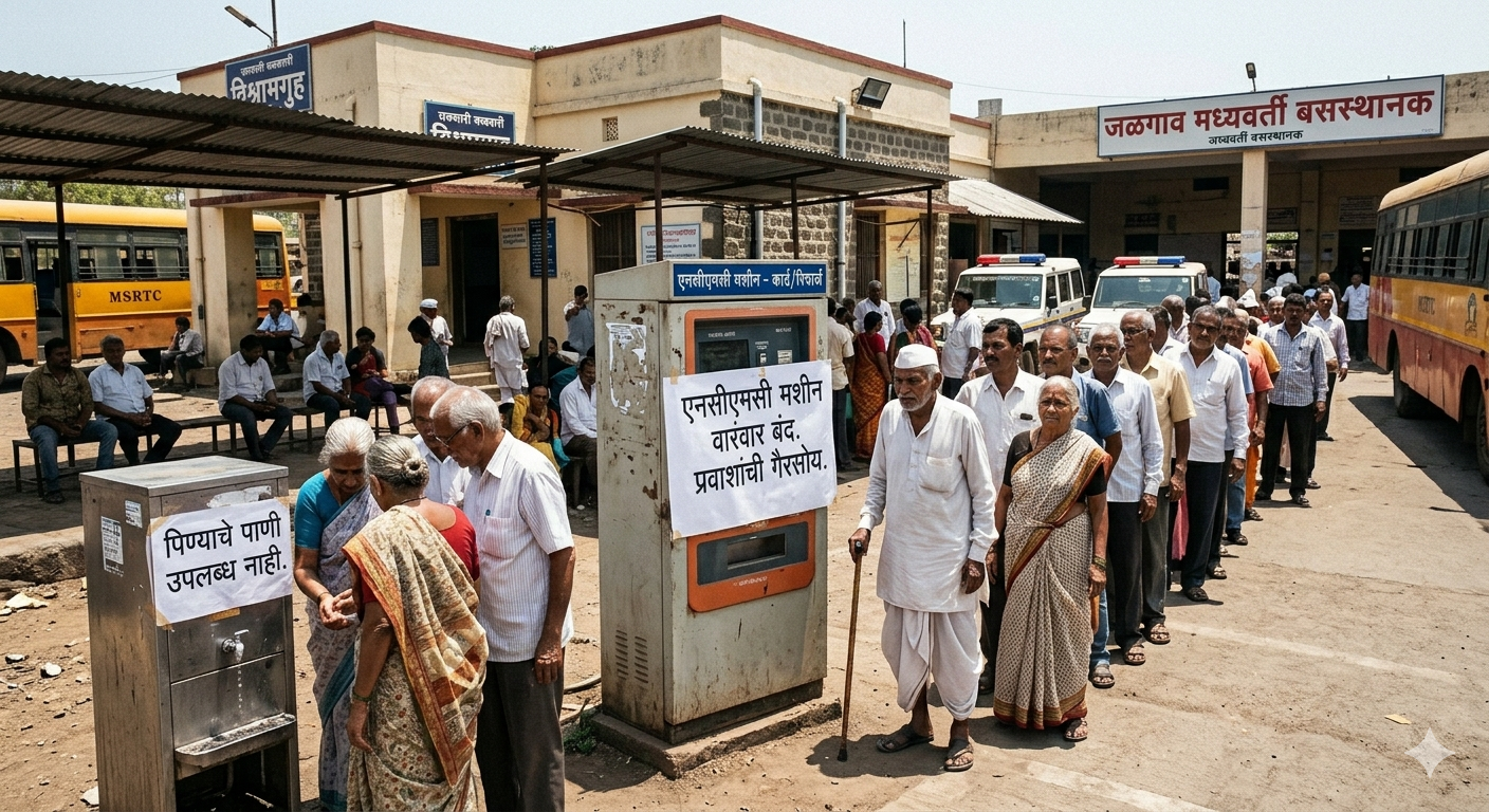जळगाव मध्यवर्ती बसस्थानकावर NCMC मशीन वारंवार बंद; ज्येष्ठ नागरिकांची मोठी गैरसोय. पिण्याच्या पाण्याची आणि सावलीची सोय नसल्याने प्रवाशांमध्ये संताप. जळगाव – शहरातील मध्यवर्ती बसस्थानकावर बसविण्यात […]